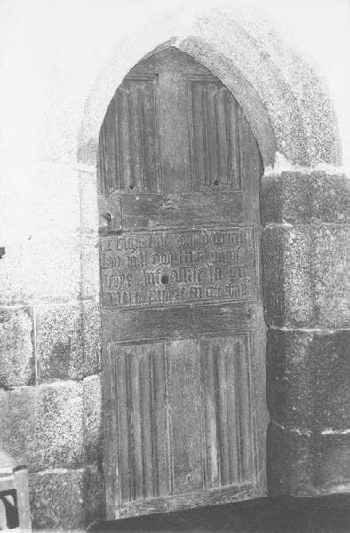 Porte de sacristie. Les panneaux inférieur et supérieur sont garnis de serviettes.