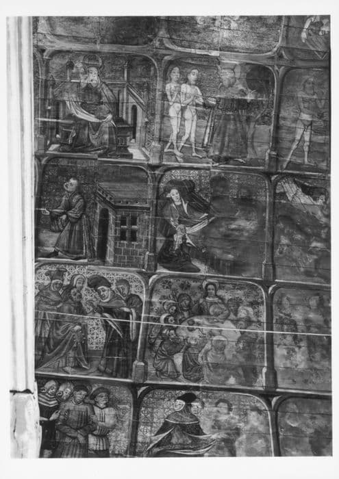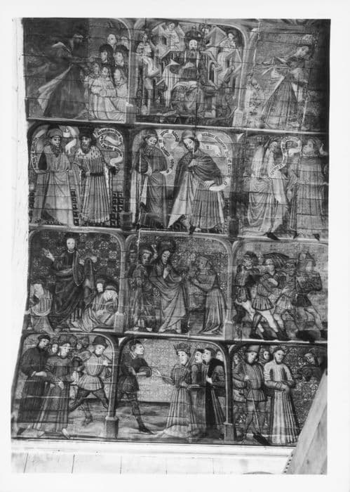36 peintures monumentales : légende de sainte Marguerite, légende de saint Fiacre