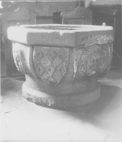 Cuve octogonale ornée de quatre masques et de quatre écus.