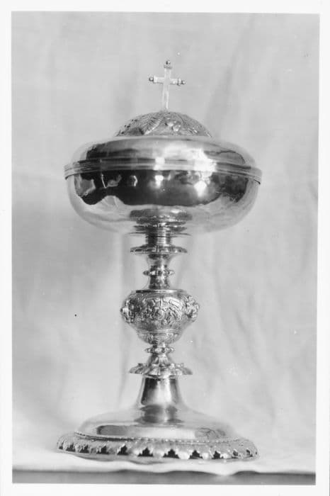 Couvercle orné de feuillages, muni d'une charnière. Base repercée.