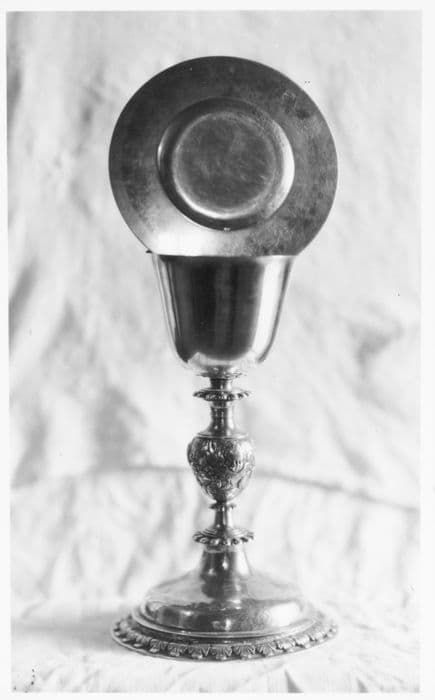 Base aux feuilles d'acanthe repercées. Noeud un peu allongé à guirlandes. Collerettes godronnées.