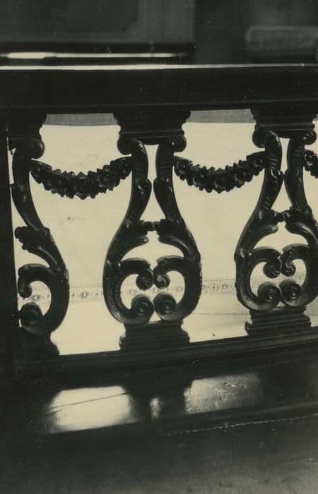 Balustrade munie de trois portes décrivant une ligne courbe. Elle comporte 50 balustres en forme de lyres. Les balustres sont reliés entre eux par des guirlandes de fleurs dont quinze ont disparu.