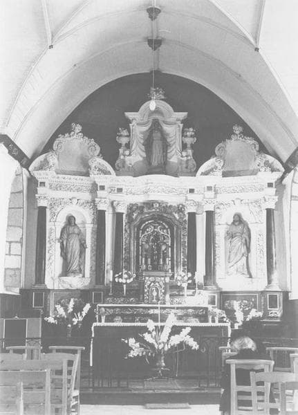 autel, tabernacle, retable, 2 statues (maître-autel) : Vierge (la), saint Joseph