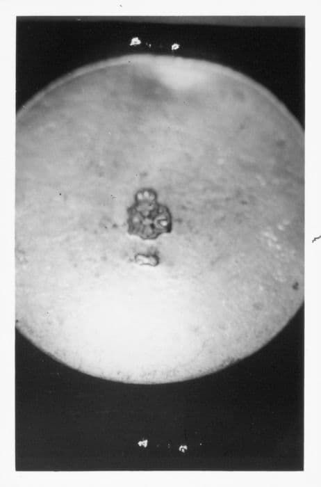 Coffret contenant deux ampoules à huile sainte et à saint chreme. Boîte rectangulaire en étain, dont le couvercle à 4 pans, est surmonté d'une attache qui supportait une petite croix. Elle est munie de deux charnières à l'arrière et d'un fermoir à goupille à l'avant. Ampoules en argent, de forme cylindrique, se terminant par une croix.