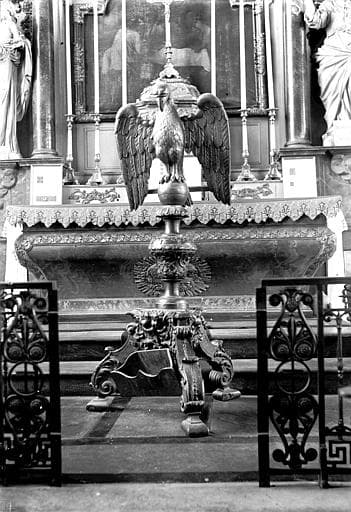 Lutrin se composant d'un aigle sur un pied formé d'un vase reposant sur trois consoles.