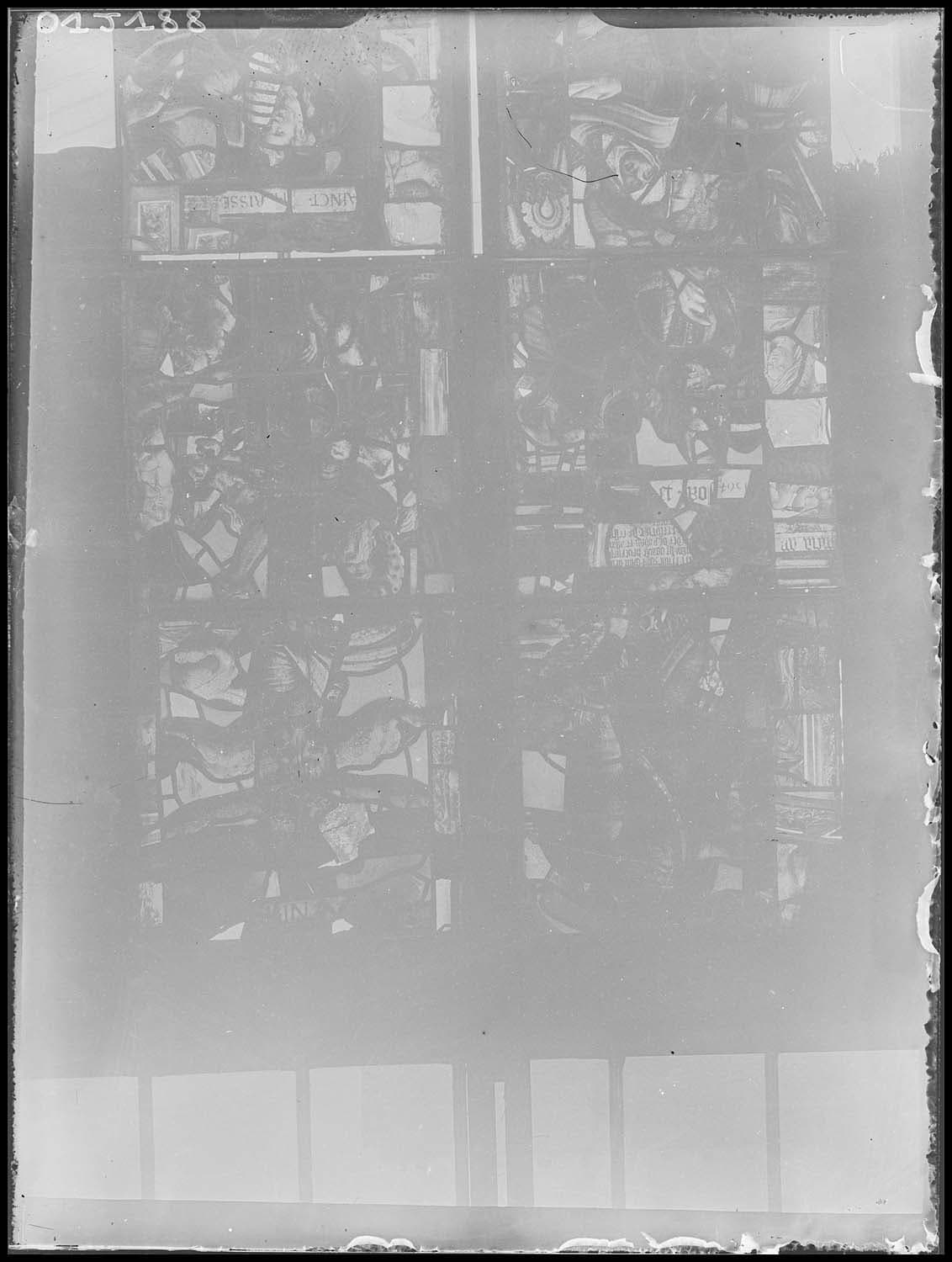 inscription (partiellement illisible) : 1564, Rohan (sur une verrière de droite). inscription : S. Morisse Al. (au bas de la première vitre de droite).