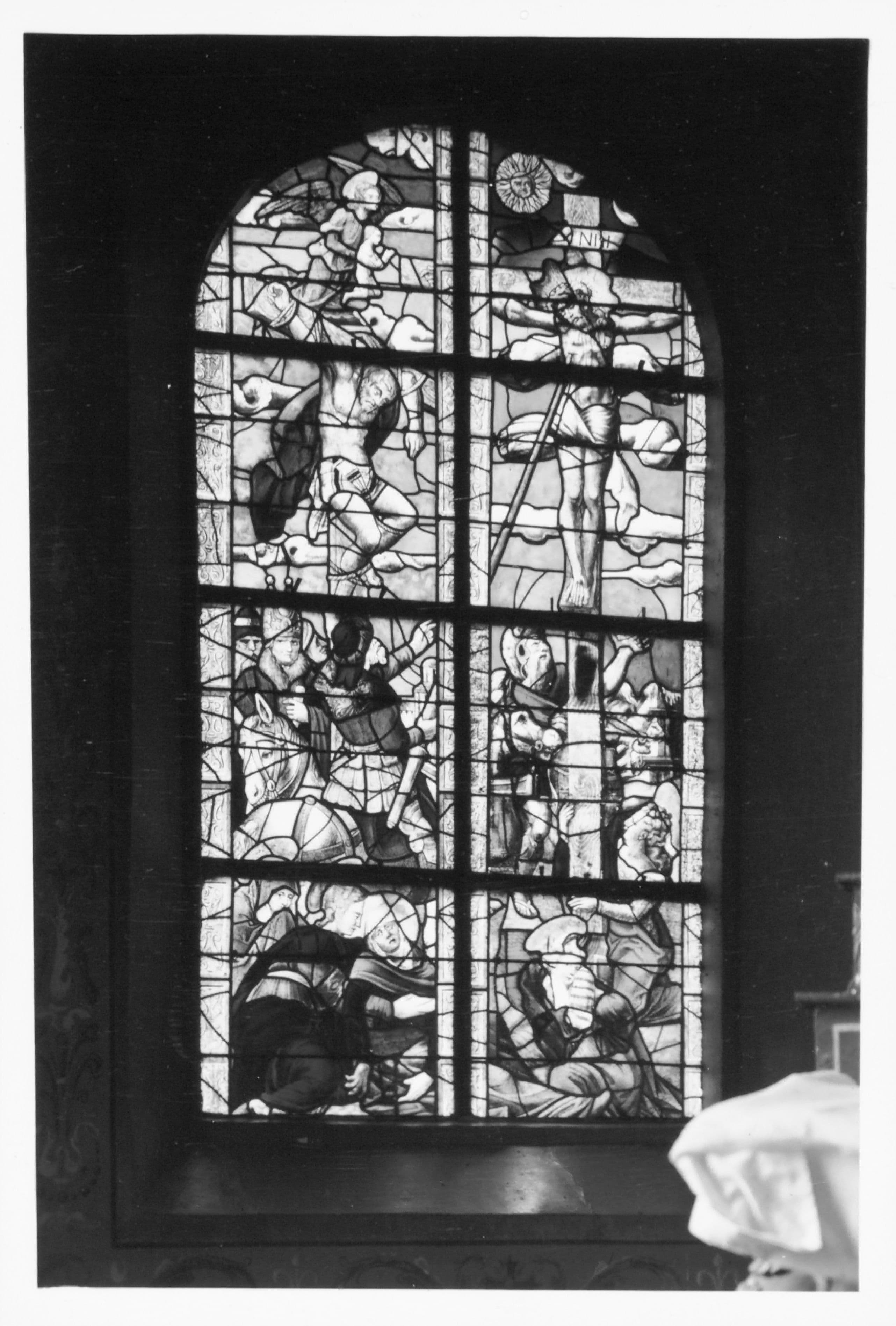 POP | Plateforme ouverte du patrimoineverrières : le Crucifiement, saint Maurice de Carnoët, les pieds sur le démon