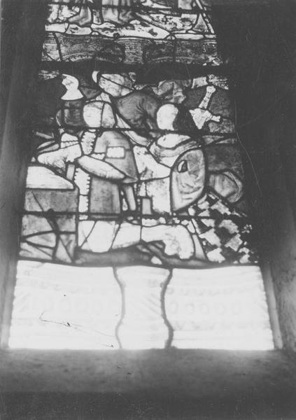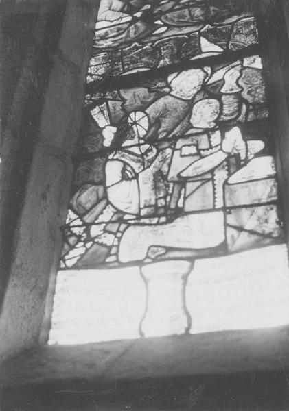 verrière : quatre saints accompagnés d'anges et d'angelots