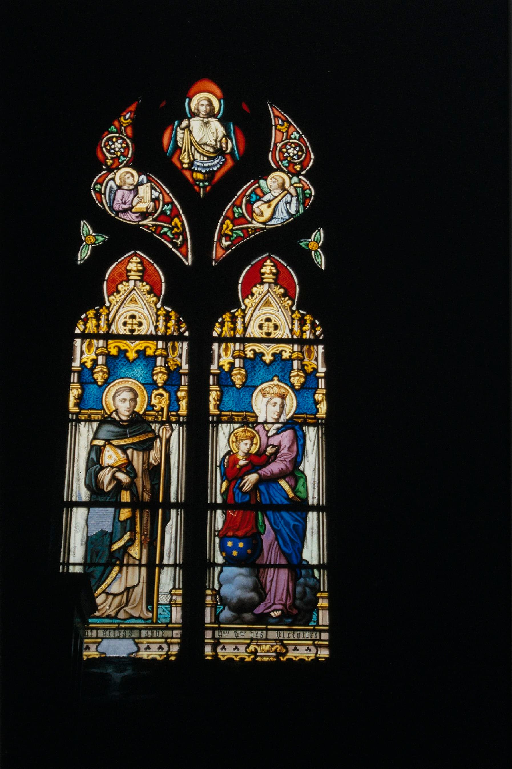 verrière : le Christ devant Caiphe, le Christ souffleté, le Christ devant Pilate, la Flagellation, le Couronnement d'épines, Ecce Homo, la Montée au calvaire, la Crucifixion, la Descente de croix