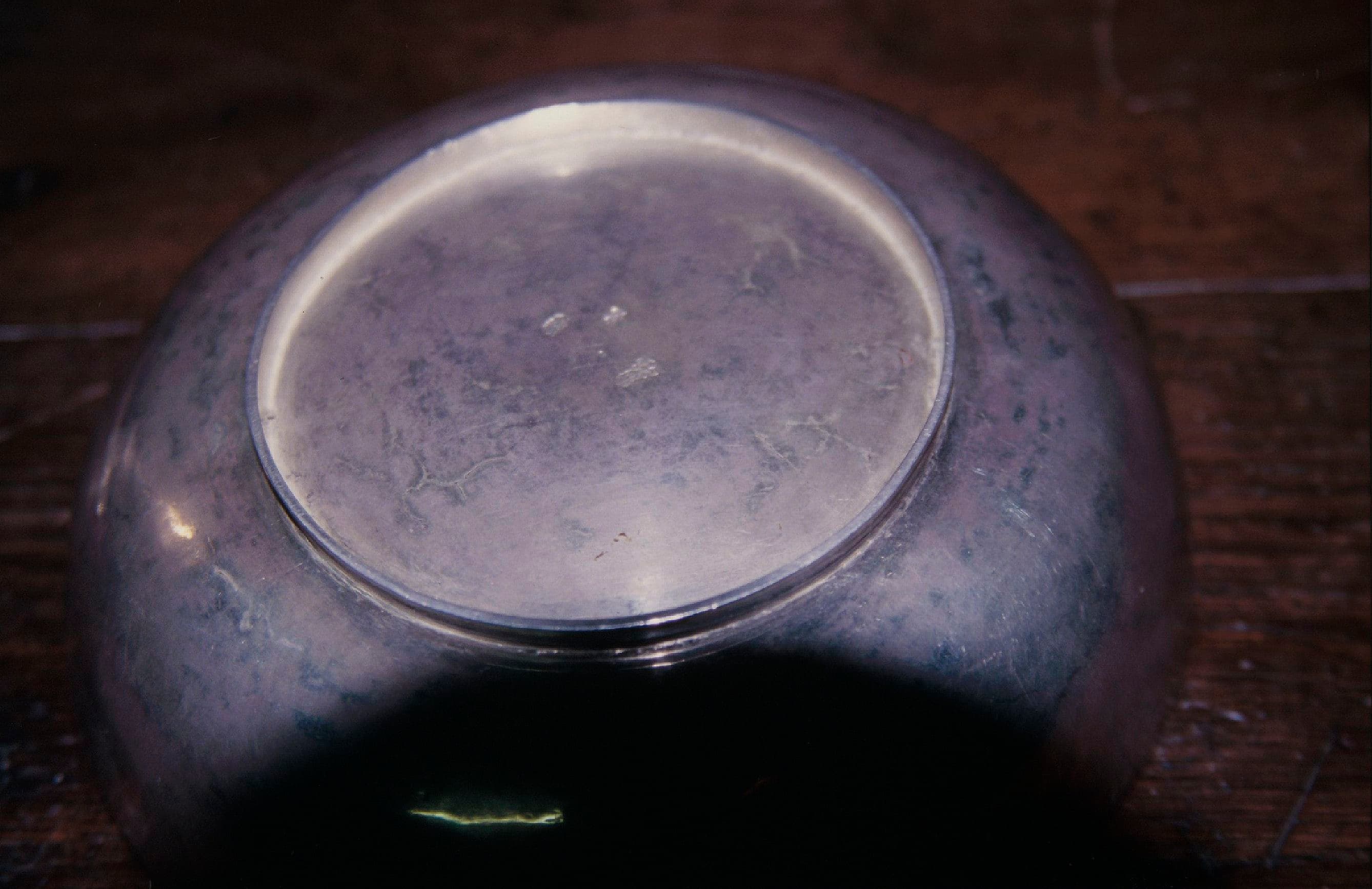 Plat circulaire, uni, reposant sur une petite base, également circulaire.