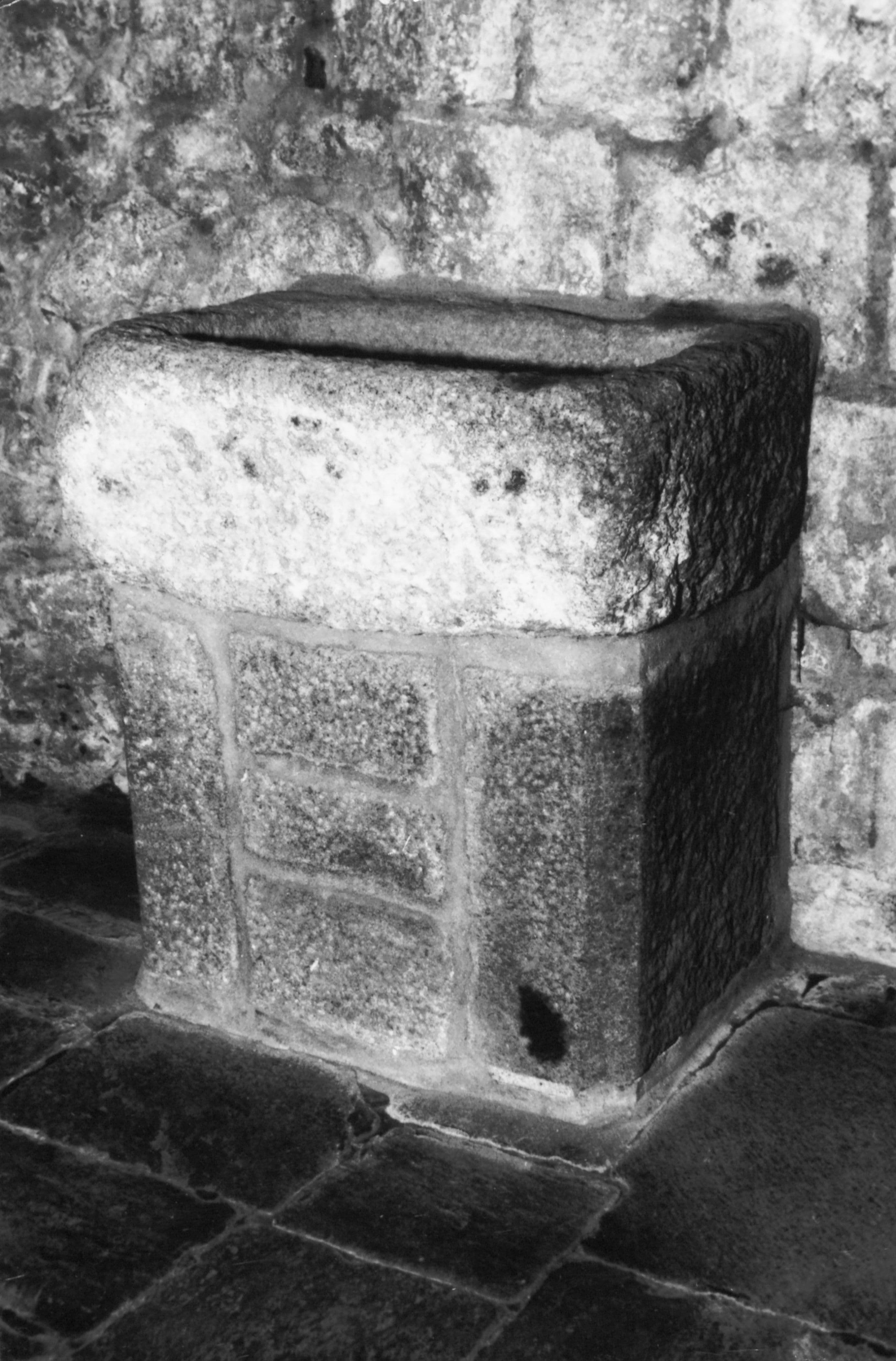 Ancienne mesure à blé servant de bénitier.