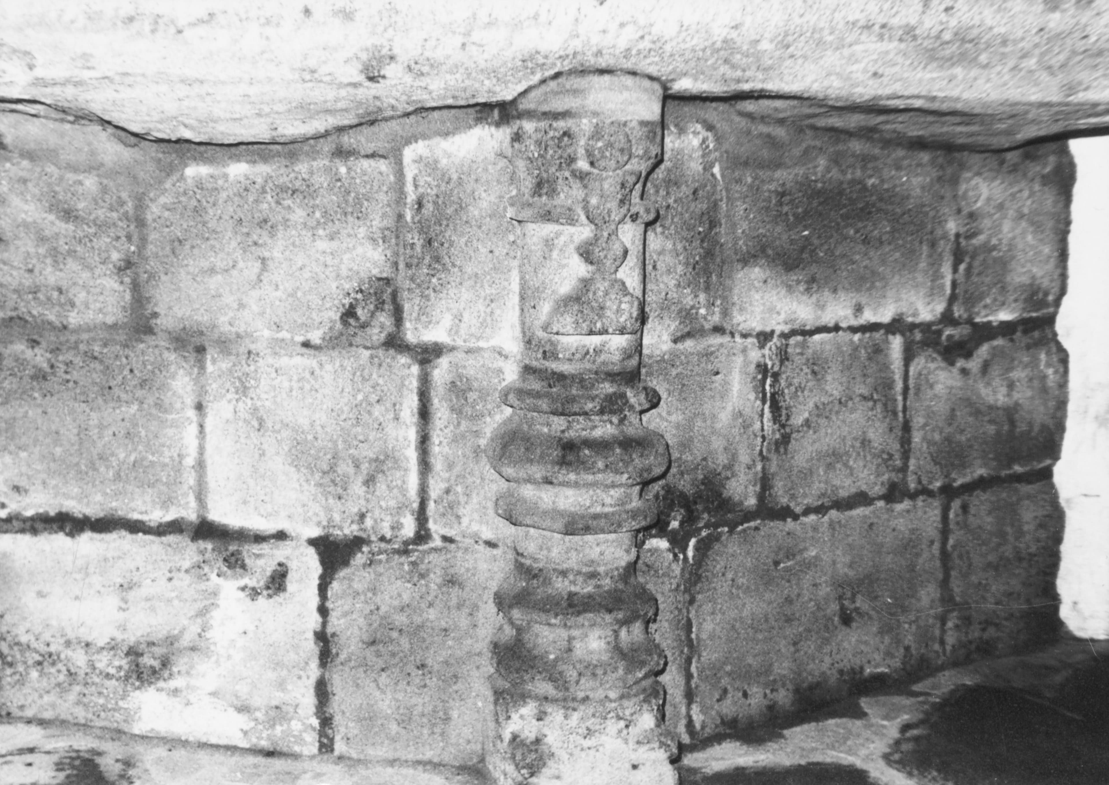 Autel en tau. La table est supportée par un massif de maçonnerie dont l'arête antérieure est formée d'une colonnette ornée à la partie supérieure d'un calice surmonté d'une hostie.