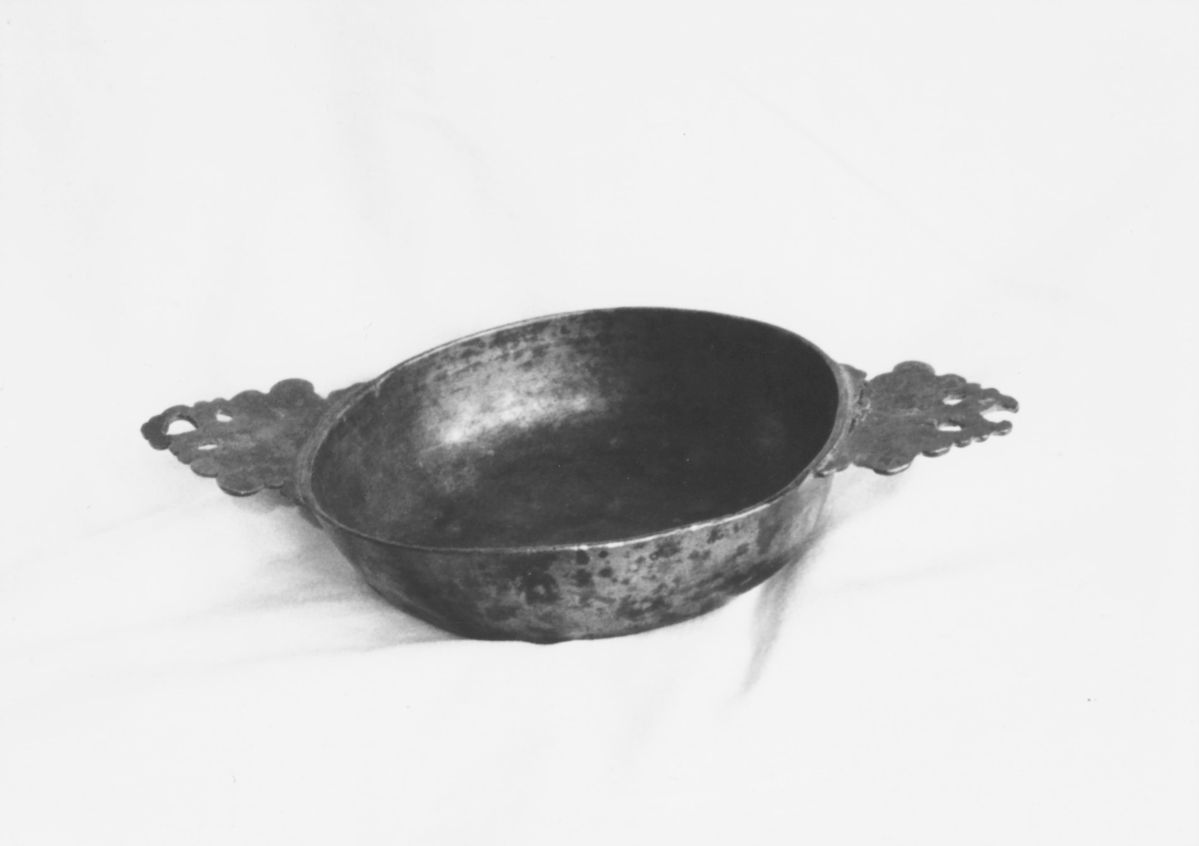 Ecuelle à deux oreilles plates percées de trois trous.