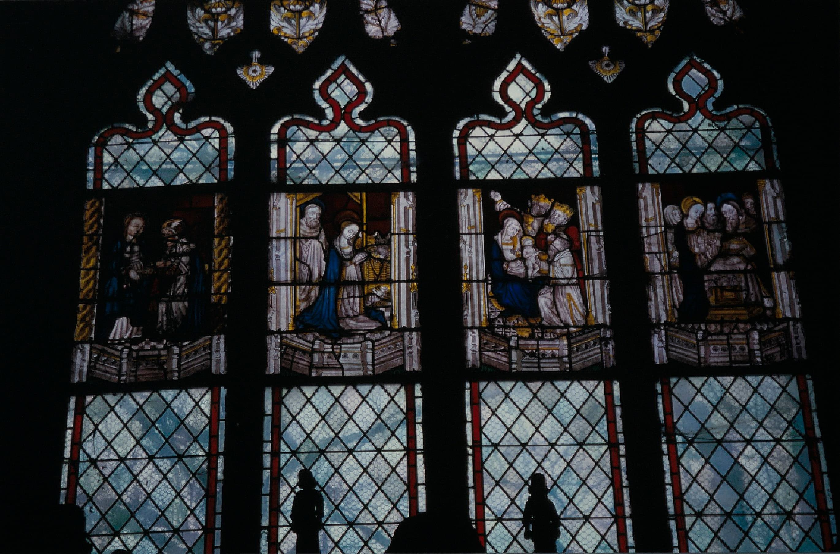 verrière : la Visitation, la Nativité, l'Adoration des Mages, la Circoncision