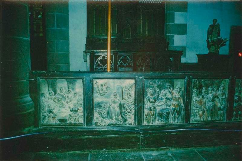 clôture de choeur : la Cène, Jésus au Jardin des oliviers, arrestation (l'), Jésus devant Anne, Jésus bafoué, Jésus devant Caïphe, Jésus devant Pilate, la Flagellation et le Couronnement d'épines, Ecce Homo, Jésus tombant sous la croix, la Crucifixion, la Résurrection