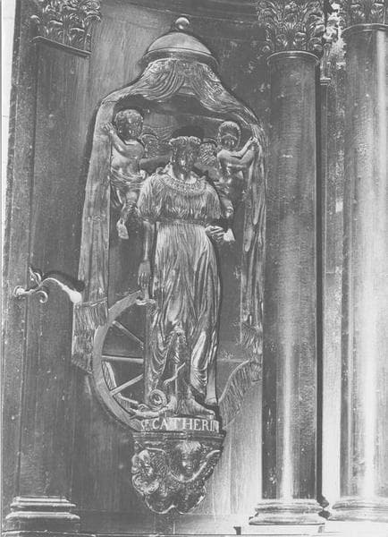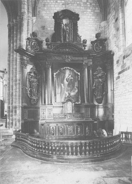 retable, 2 statues : saint Yves, sainte Catherine, tableau : Vision de sainte Marguerite, tabernacle, gradins d'autel, clôture d'autel (table de communion)