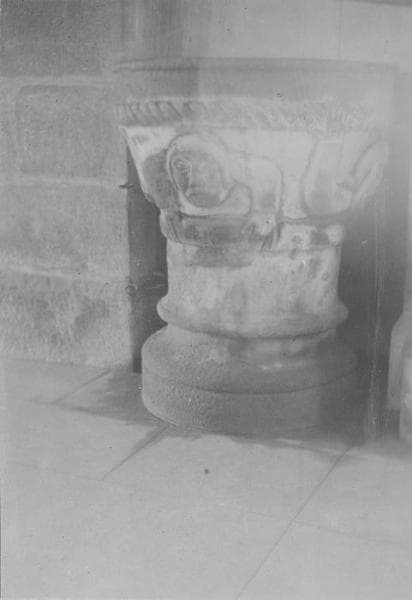 La cuve est décorée d'une torsade et de têtes accompagnées de bras alternativement le vés ou baissés.