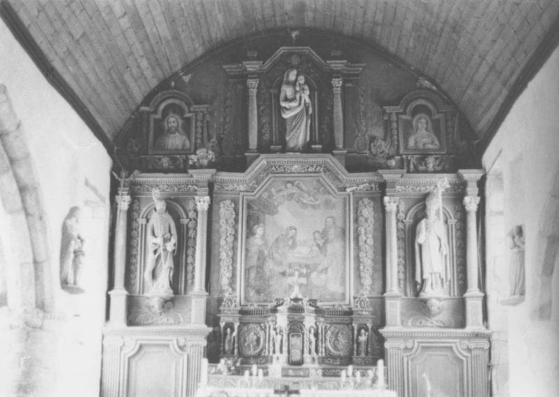 retable, statue, 2 tableaux, tabernacle du maître-autel : Vierge à l'Enfant, la Nativité, Christ et la Vierge (le)
