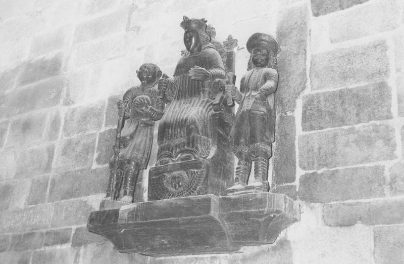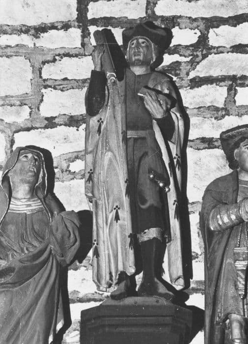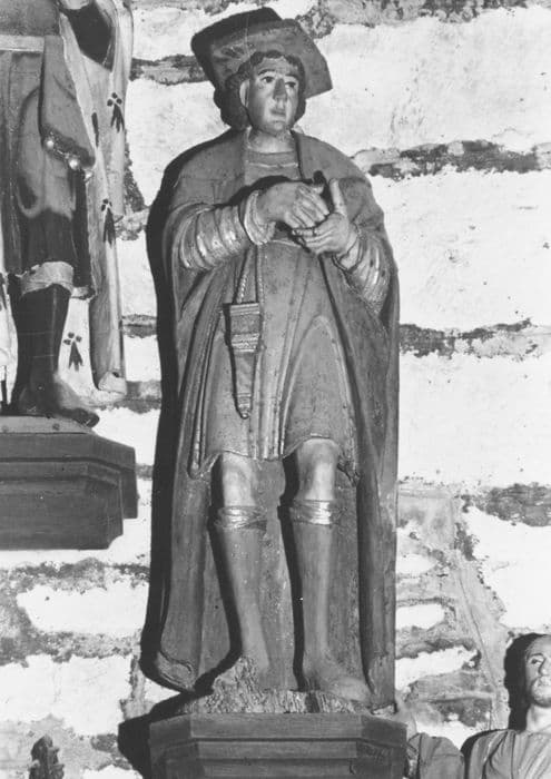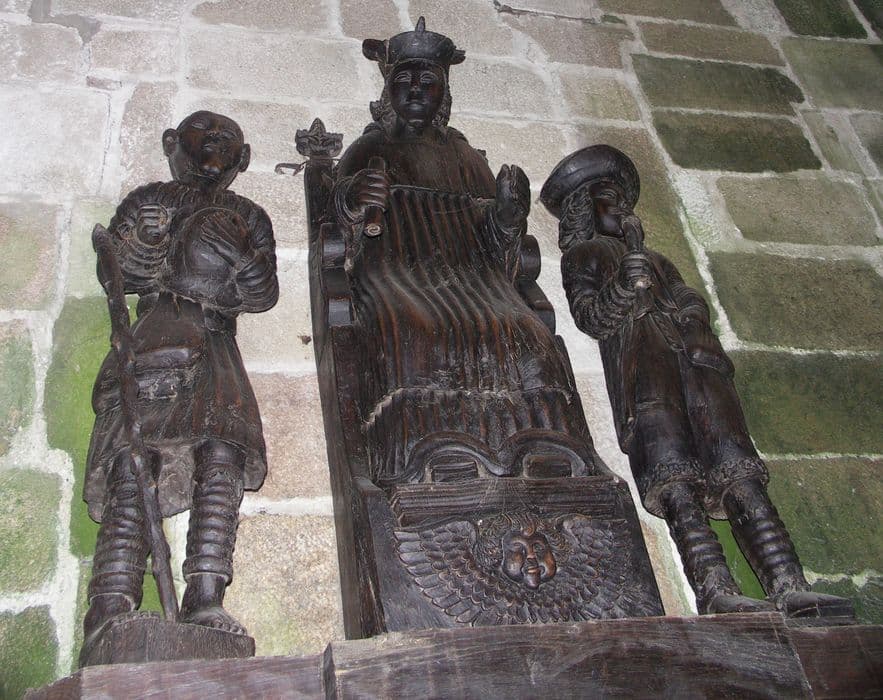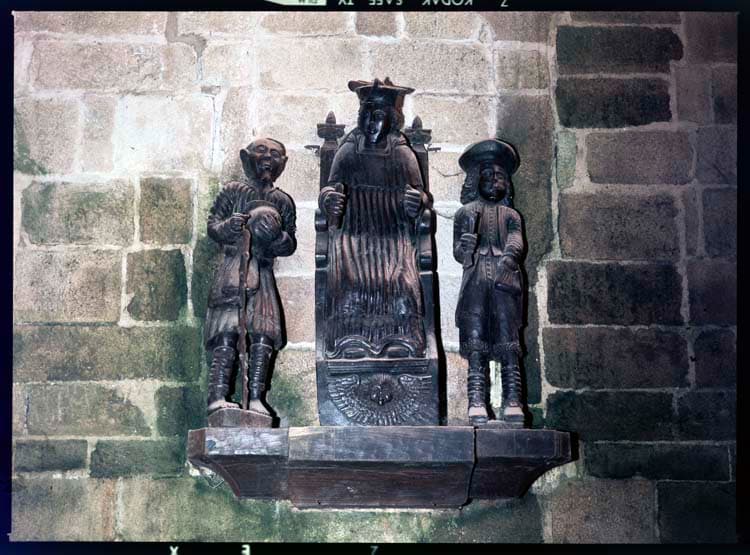 groupe sculpté : saint Yves entre le riche et le pauvre