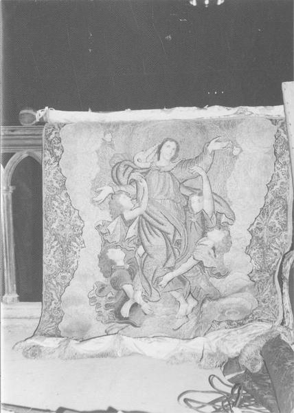 bannière de procession : la Crucifixion entre la Vierge et saint Jean, l'Assomption