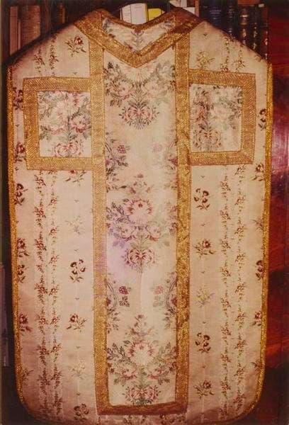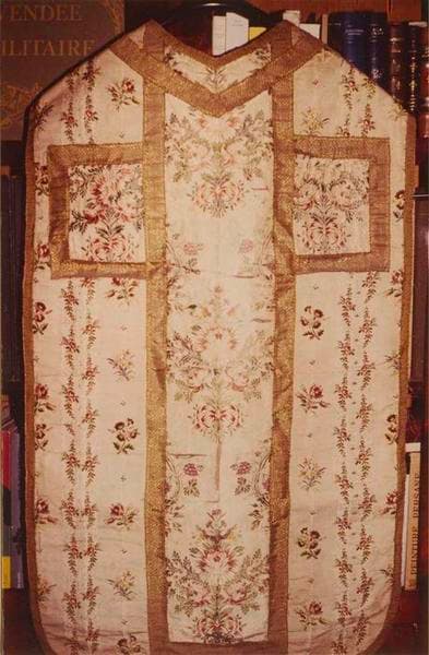 Chasuble en pékin, soie et fils d'or. Chasuble n° 1.