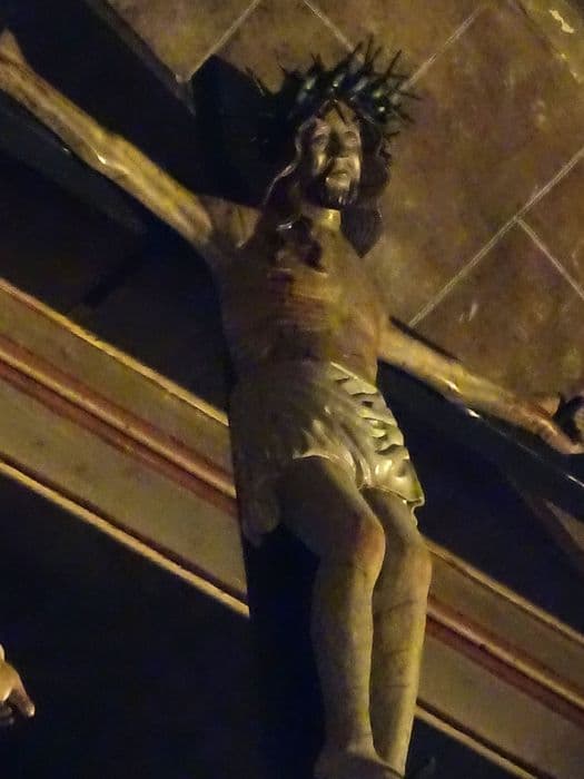 h = 190 (Dimension approximative du Christ) ; Dimension de la Vierge et de saint Jean : h = 160