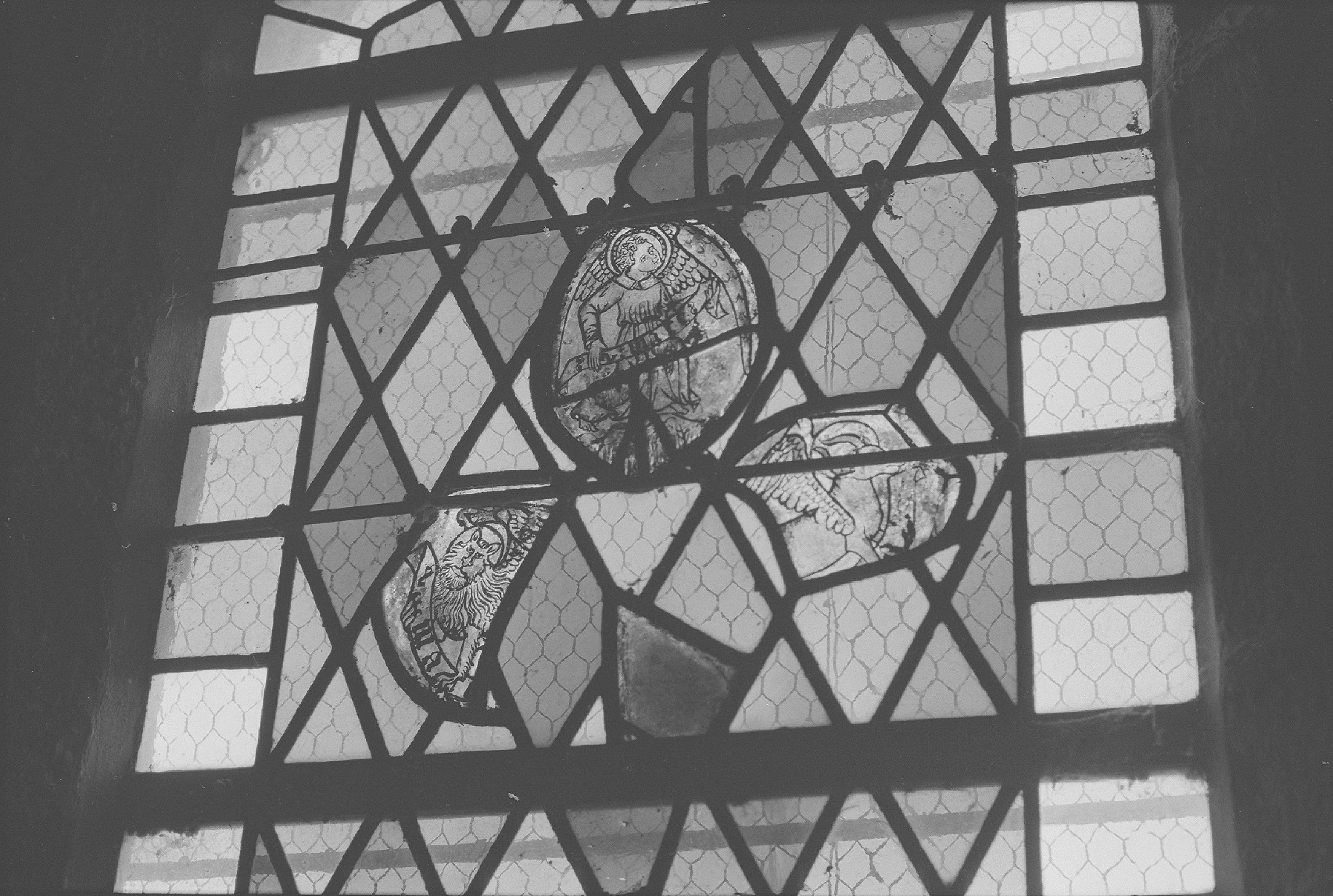 POP | Plateforme ouverte du patrimoine3 verrières : symbole de saint Mathieu, symbole de saint Luc, symbole de saint Marc