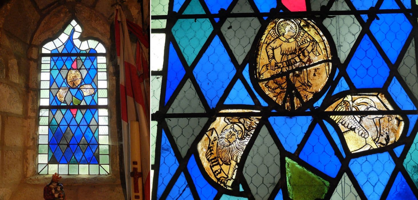 3 verrières : symbole de saint Mathieu, symbole de saint Luc, symbole de saint Marc