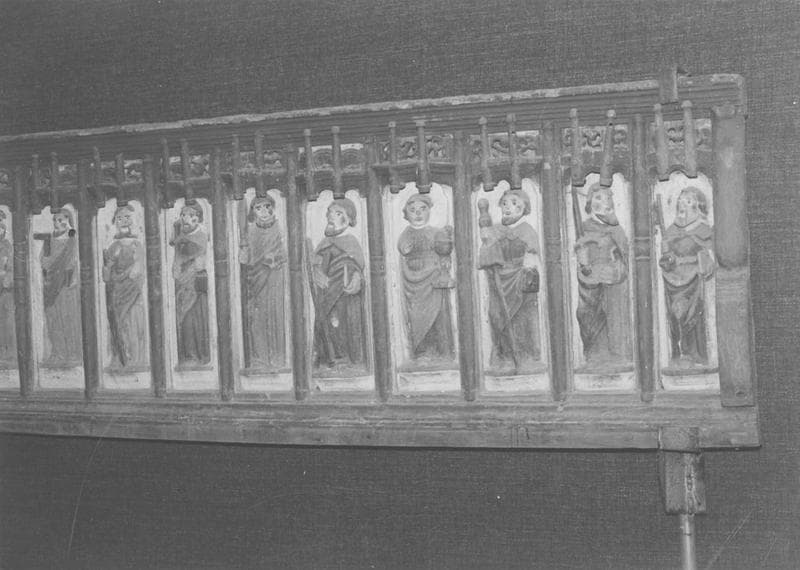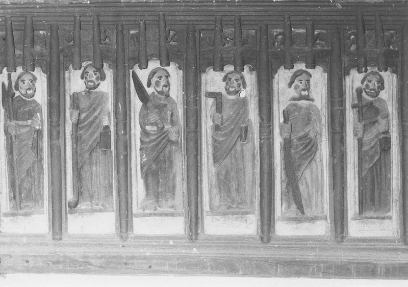 Les apôtres sont dans des niches séparées par des fuseaux et surmontées par des dais.