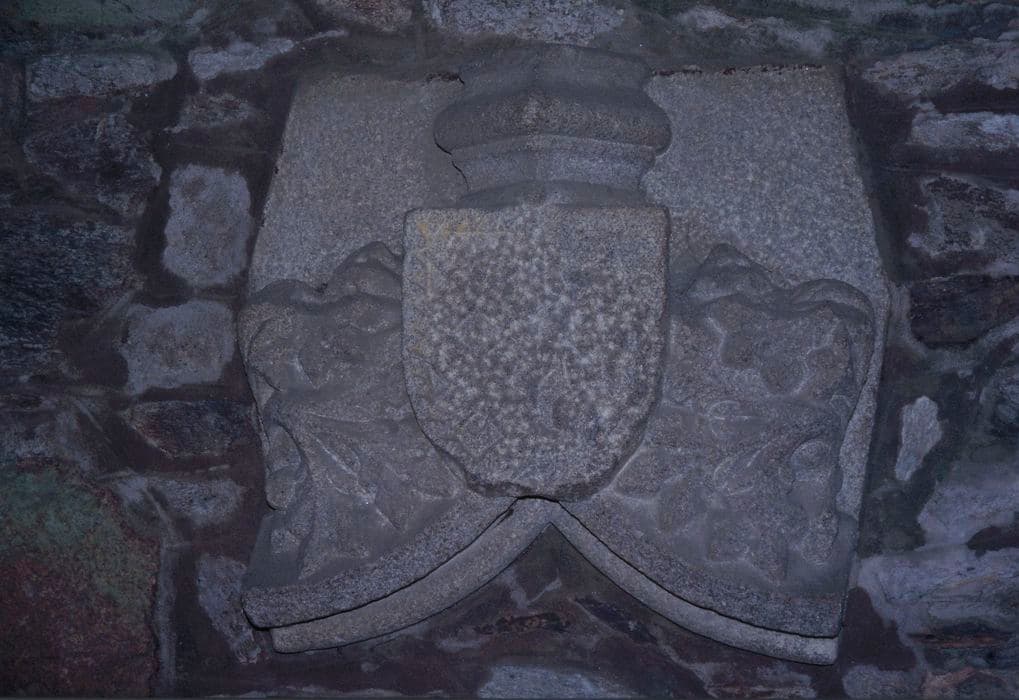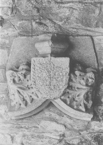Fragment d'arc brisé sommé d'un écu.