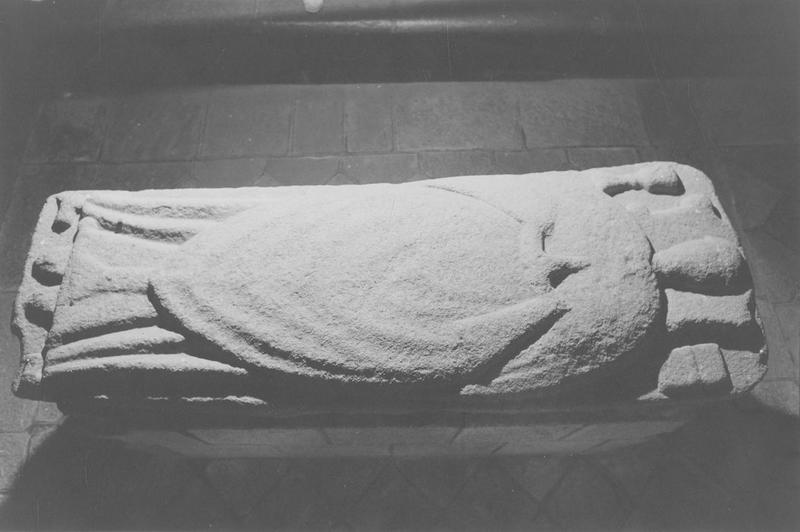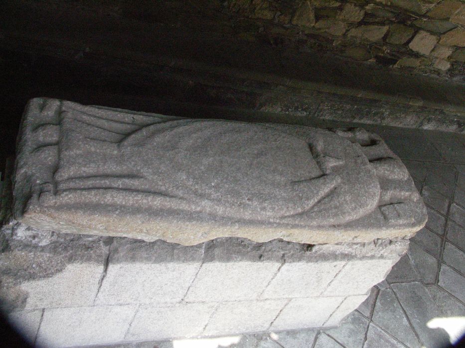 La dalle a dû faire partie d'un dallage car on y voit des traces d'usure, le gisant est défiguré. Elle a été découverte en 1863 dans le cimetière du prieuré Saint-Pierre à Matignon.