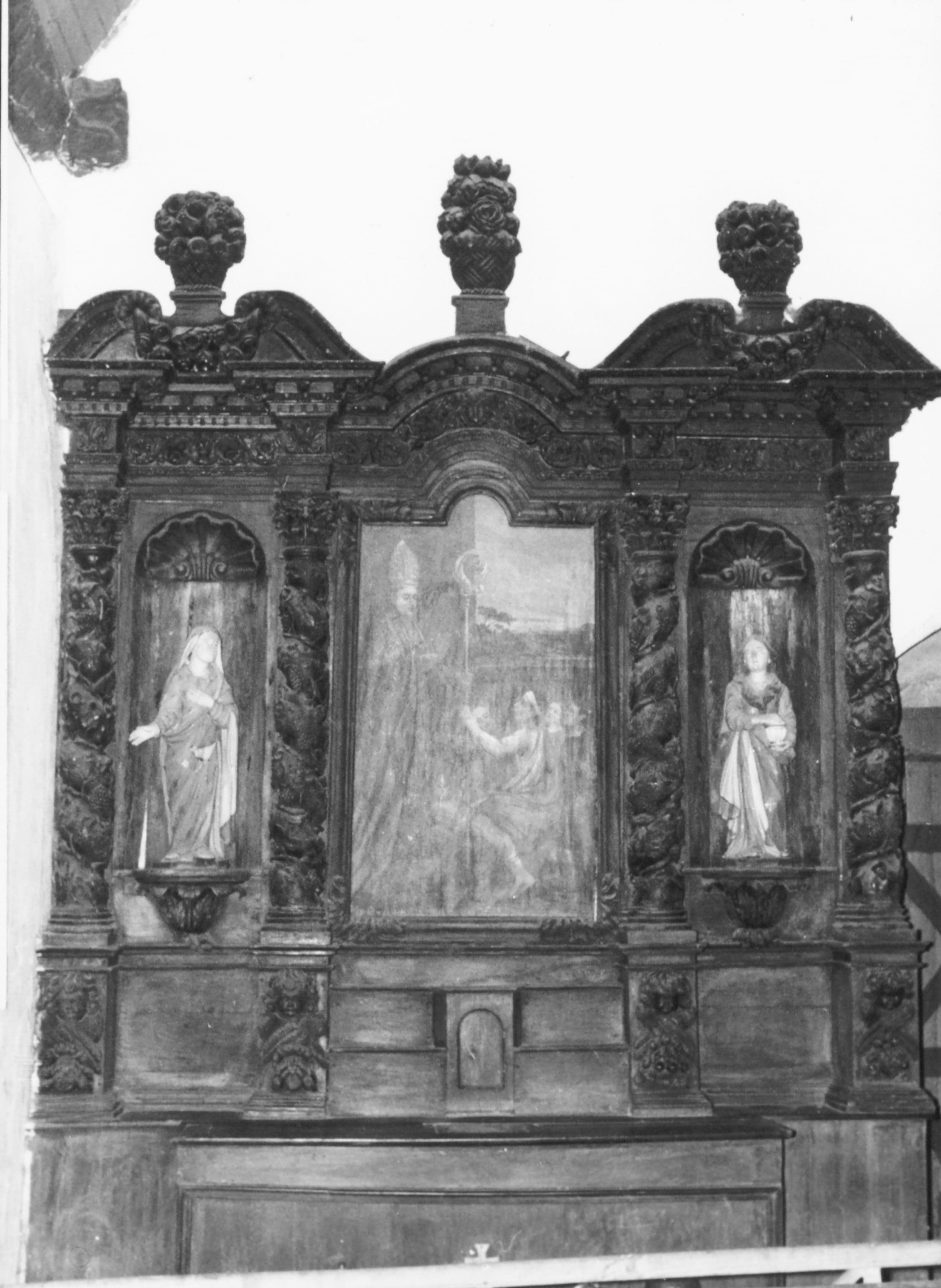 colonne torse ; pampre ; coquille ; bouquet ; angelot : tête ; sainte Madeleine ; Vierge