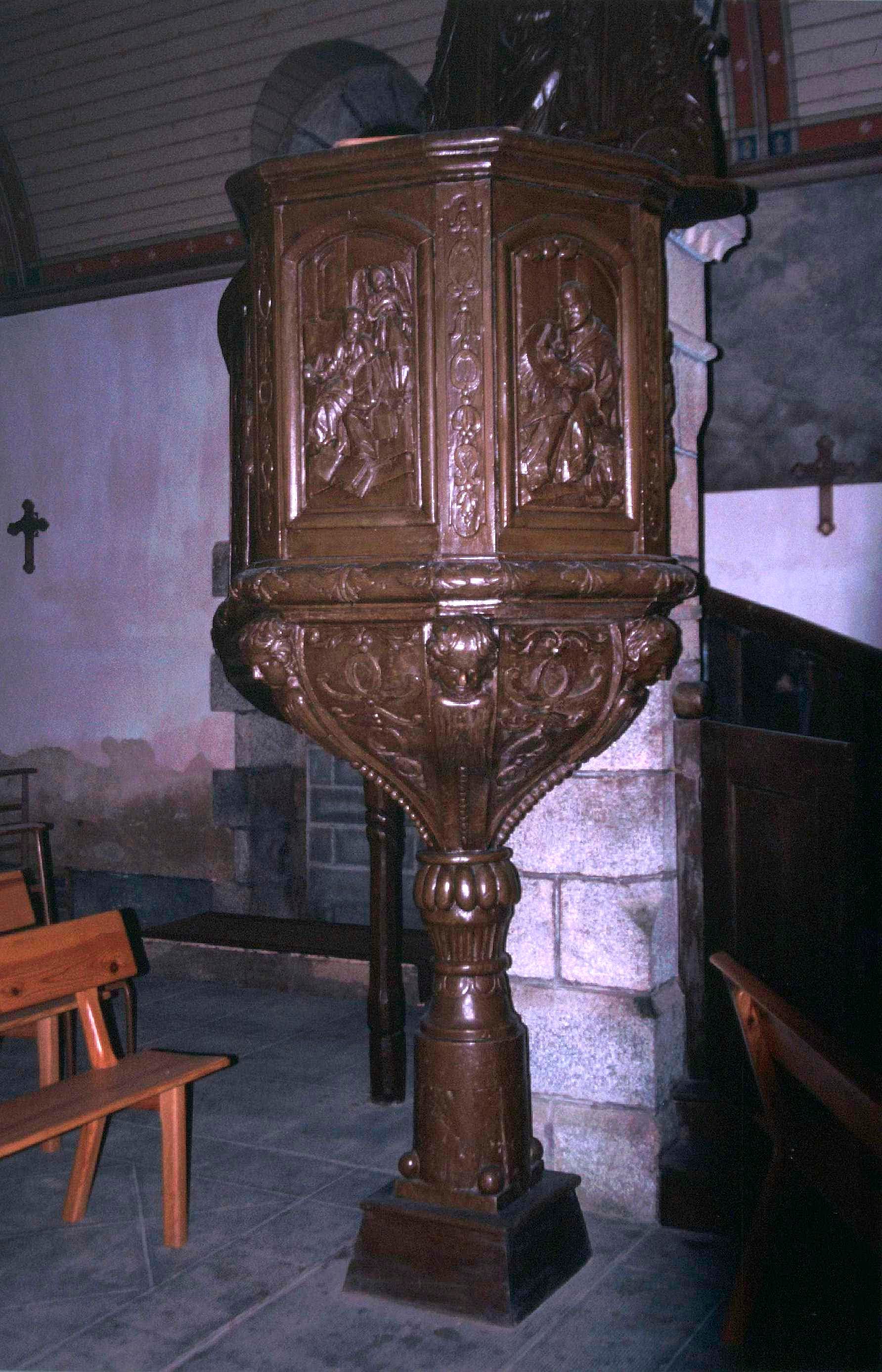 Les panneaux de la cuve et de l'escalier sont peints des représentations des quatre évangélistes et des prophètes. L'abat-voix est bordé de petits éléments de bois pendants semblables à des bannières ornées de fleurs ; sous celui-ci, est sculpté un motif rayonnant. Au sommet de la chaire se tient une Renommée sonnant une trompette de la main droite et en tenant une seconde dans l'autre main.