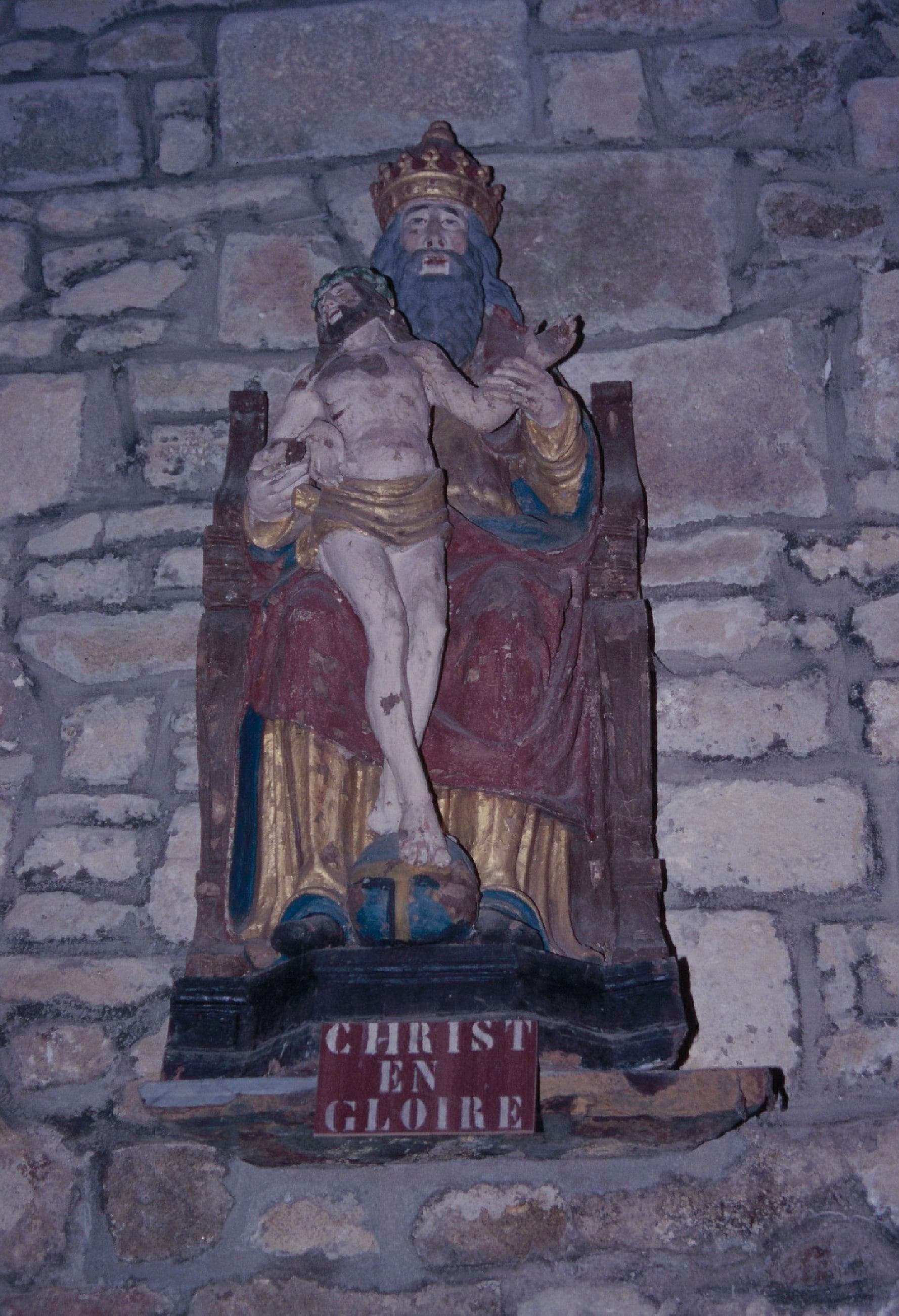 Binité : trône ; Christ : en pied, globe, disproportion