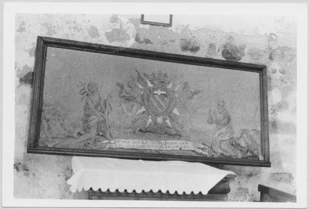 POP | Plateforme ouverte du patrimoineantependium aux armes du chevalier de Gain de Linard entre saint Jean-Baptiste et saint Pierre