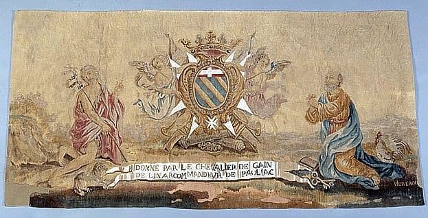 antependium aux armes du chevalier de Gain de Linard entre saint Jean-Baptiste et saint Pierre