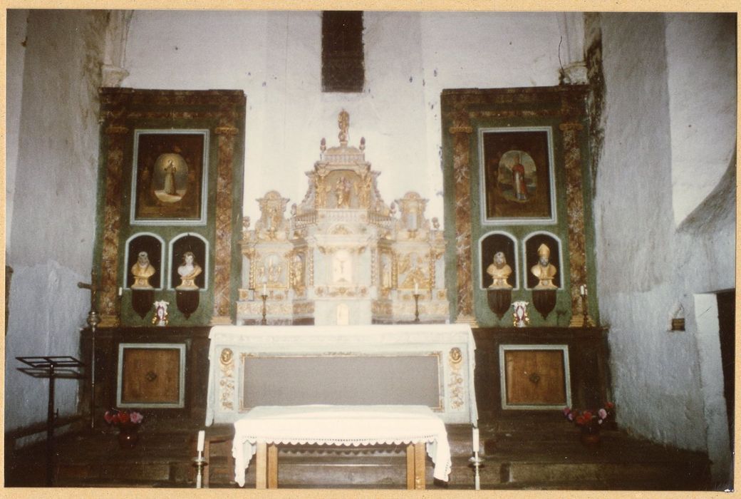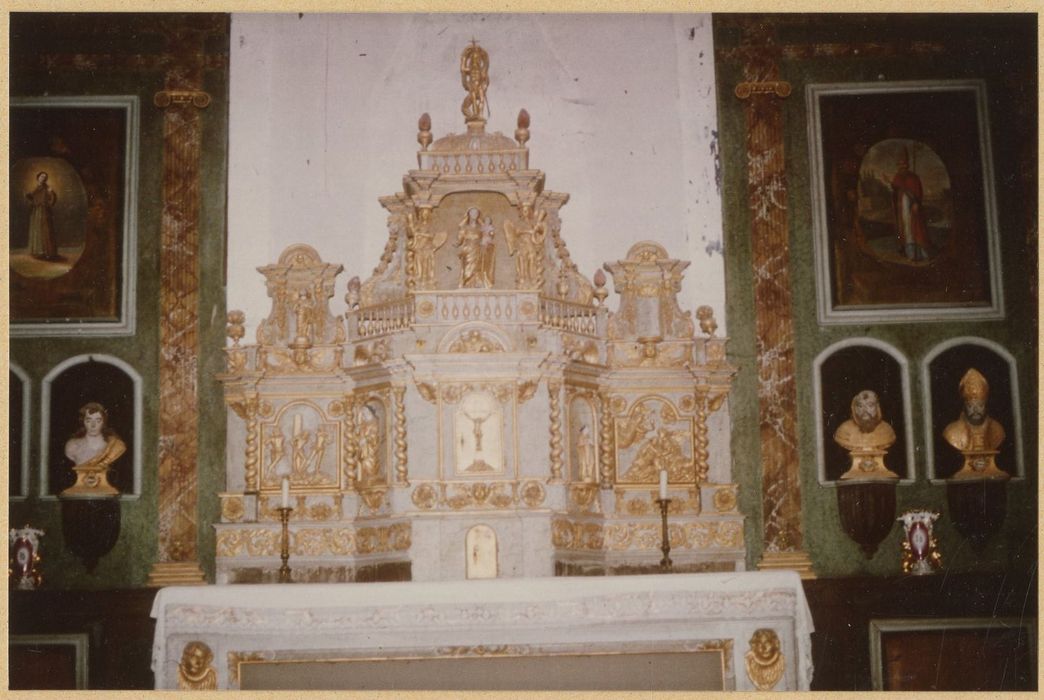 Arrêté : autel, tabernacle avec niche à ostensoir, 4 statuettes.