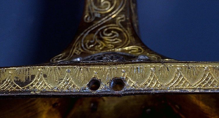 cuivre : gravé, filigrané, doré ; argent : repoussé, doré ; cristal de roche ; verre