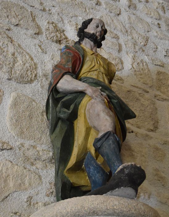 Le bras gauche manque ainsi que le bourdon qu'il tenait peut-être. Restauration par Daniel Nicaud en 1999. Restauration par Nathalie Mèmeteau en 2009.