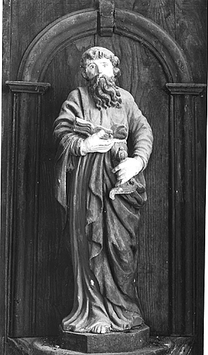 [Exposition. Limoges. 1981]. 'Richesses d'art du plateau de Millevaches', n° 203 ; Simone de Montessus de Ballore Lecointre. 'Retables et tabernacles des XVIIe et XVIIIe siècles dans les églises de la Creuse'. Paris : Nouvelles éditions latines, 1988, p. 33, fig. 8 et 9 couleurs.