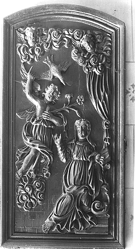 POP | Plateforme ouverte du patrimoine2 demi-reliefs (éléments de retable) : l'Annonciation et la Nativité
