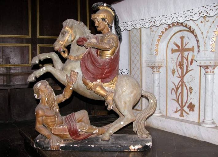 groupe sculpté : saint Martin partageant son manteau