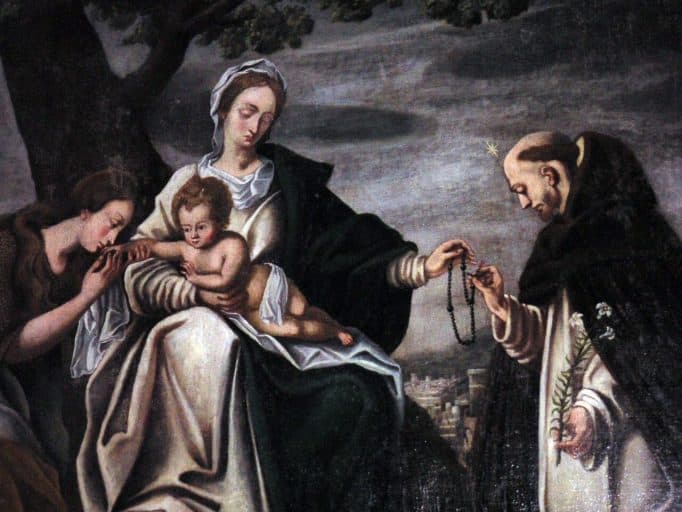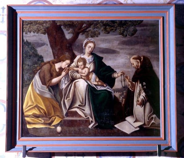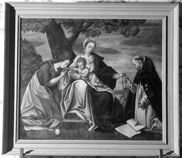 tableau et cadre : Vierge à l'Enfant avec sainte Madeleine et saint Dominique de Guzman