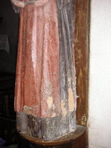 sur une console, contre le mur nord de la nef, à droite de l'entrée de la chapelle nord ; scellée au dos (?)