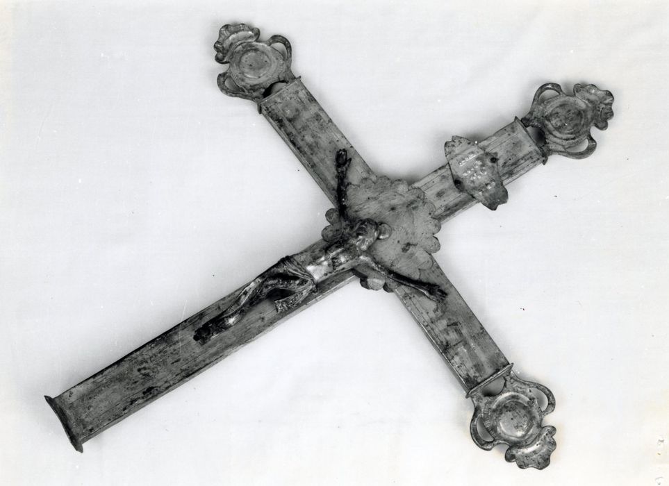 Arrêté : croix de procession, métal argenté du XVIIIe siècle.