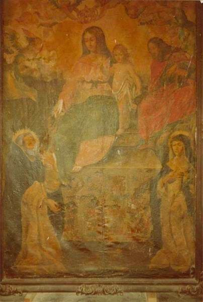 tableau : Remise du Rosaire (Vierge à l'Enfant entre saint Dominique et sainte Catherine de Sienne)