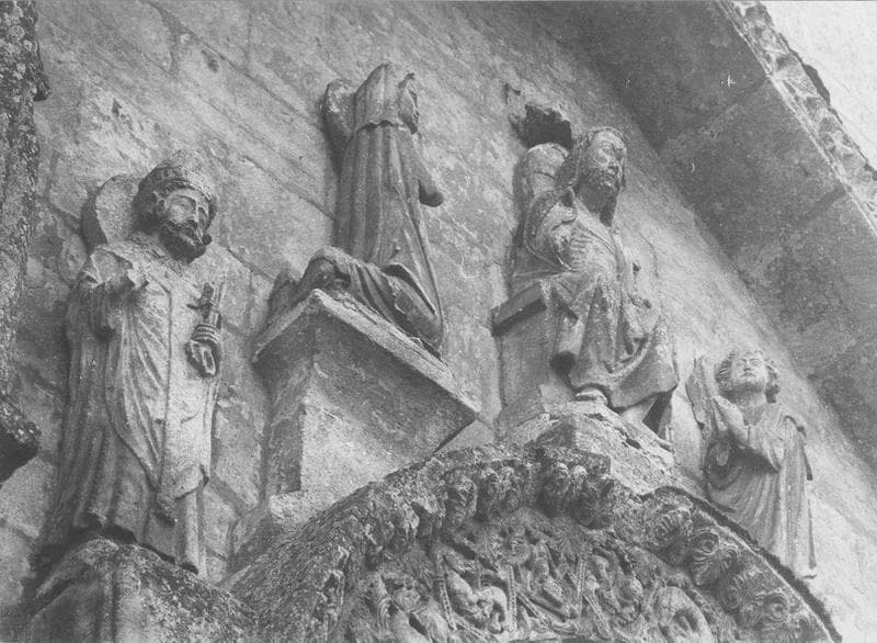 5 statues : Christ, Vierge, saint Jean, saint Pierre, saint Matthieu (?)