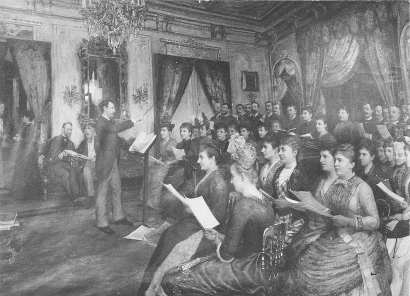 tableau : répétition chorale chez Monsieur de la tombelle