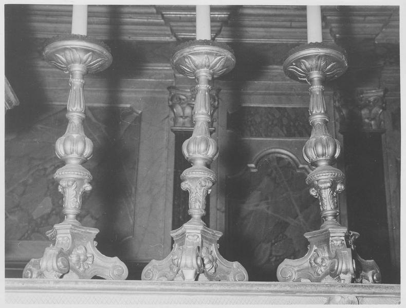bois : taillé, décor en bas-relief, peint, faux marbre, doré