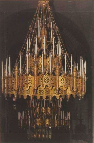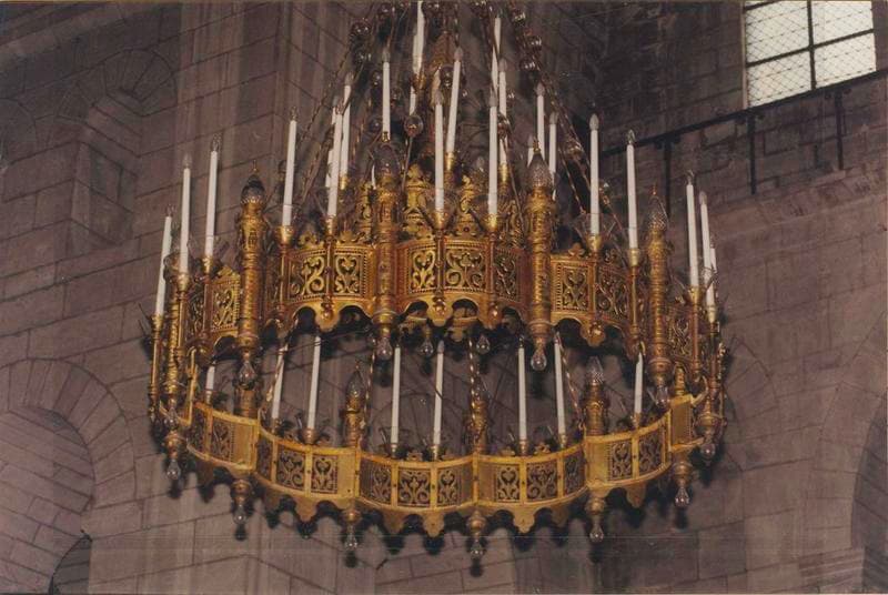 Cinq lustres de 3 à 4 mètres de hauteur, poids de 300 à 400 kg.